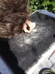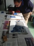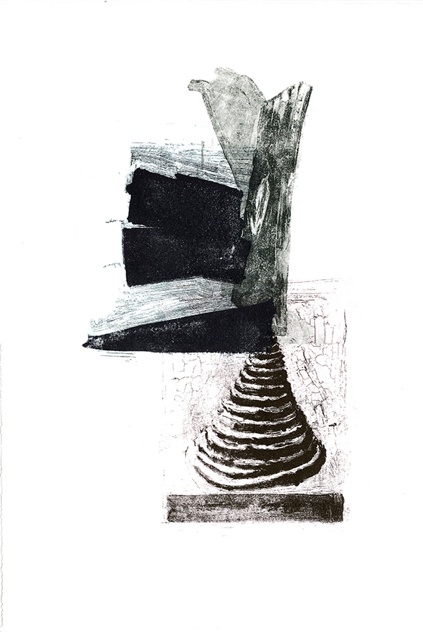 J’ai travaillé sur ces lithographies à l’atelier Le petit jaunais pour « L’Odeur de l’encre », maison d’éditions portées par Gilles Bigot. Nous travaillons ensemble depuis de nombreuses années. D’abord au sein de son entreprise Cristalis où il faisait l’acquisition d’estampes des éditions Le petit jaunais. Celles-ci étaient ensuite intégrées dans les documents de l’entreprise, catalogue, carte de vœux, site internet, par mes soins. À sa retraite, il fonde cette structure et investit dans la création de nouvelles lithographies suivant ce que j’appelle un concept éditorial original. Nous continuons donc cette collaboration autour de séries de 5 lithographies de même format avec à ce jour 6 artistes, Jean Fléaca, Gisèle Bonin, Grégory Markovic, Christian Gaspard, Philippe Cognée et moi-même. Il invente un système de présentation composé de différents bois, dont le frêne, montés sans colle. Il les produit en série, vendus avec la lithographie.