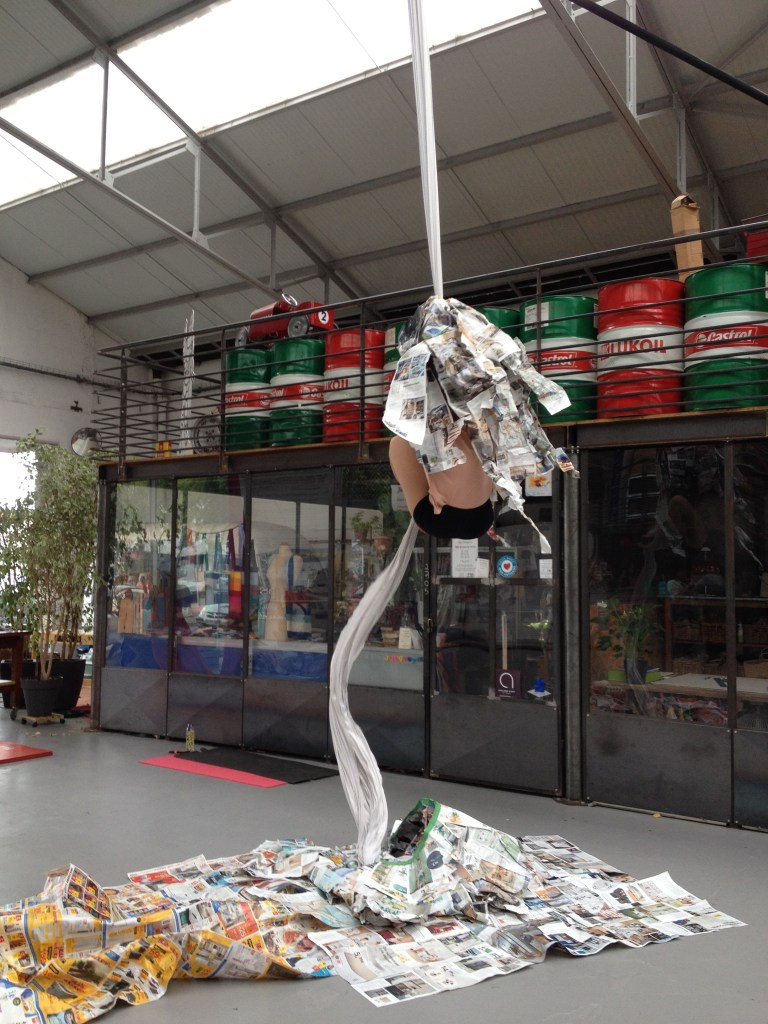 26 juin aprem, nous avons Mélanie et moi RDV au Garage à St Nazaire. Des danseuses sur tissu aérien s’entrainent avant de proposer un set devant leur professeure Fred Deb’ et un public attentif et bienveillant. Notre première sortie publique. Tract pour Mélanie. Je rentre en scène avec mes Reuse. Très encourageante séance, d’autant plus que nous avons été retenues pour un Panier Artistique (Ouvrir l’horizon) : Fred Deb’ est la compagnie qui porte le projet « Papeureuse », un technicien nous apportera le matériel nécessaire au tissu, nous avons déjà deux dates : 21 et 24 juillet 2020 dans les quartiers de Nantes.
