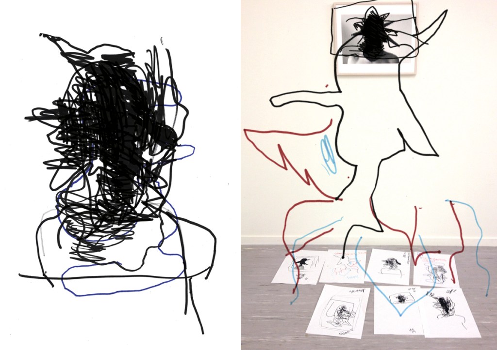… » Pas plus que le conducteur de voiture ne regarde son volant, le marcheur ses pieds, le dessinateur ne regarde ses outils de dessin. Concentré à regarder, voir, scruter, observer, saisir,… le cerveau est en pleine ébullition, décomplexé ? Les mains dessinent avec les yeux. Le regard guide les mains qui fixent ses infinies circonvolutions. « …