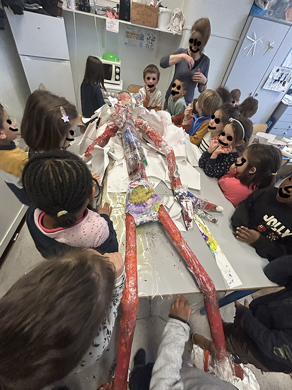 Un ouvrage en commun très singulier à carnavaler : ballet, festin, duel, match à inventer pour la rencontre entre les géants, les enfants, les grands (enseignants, atsem, familles….) ! »