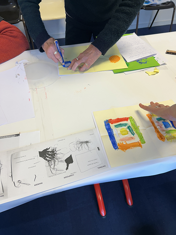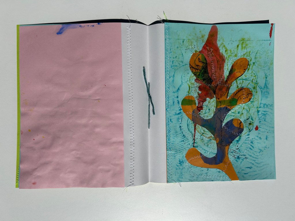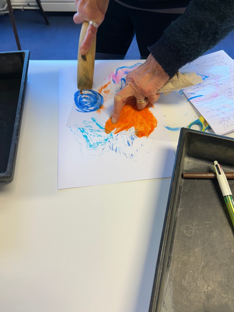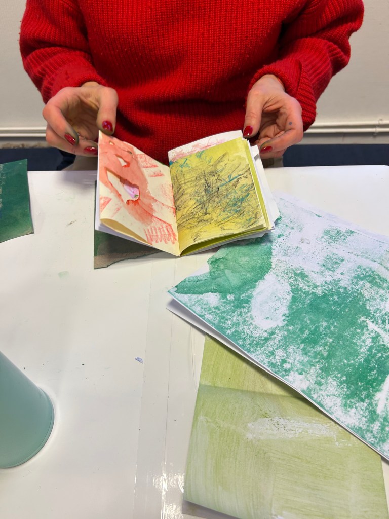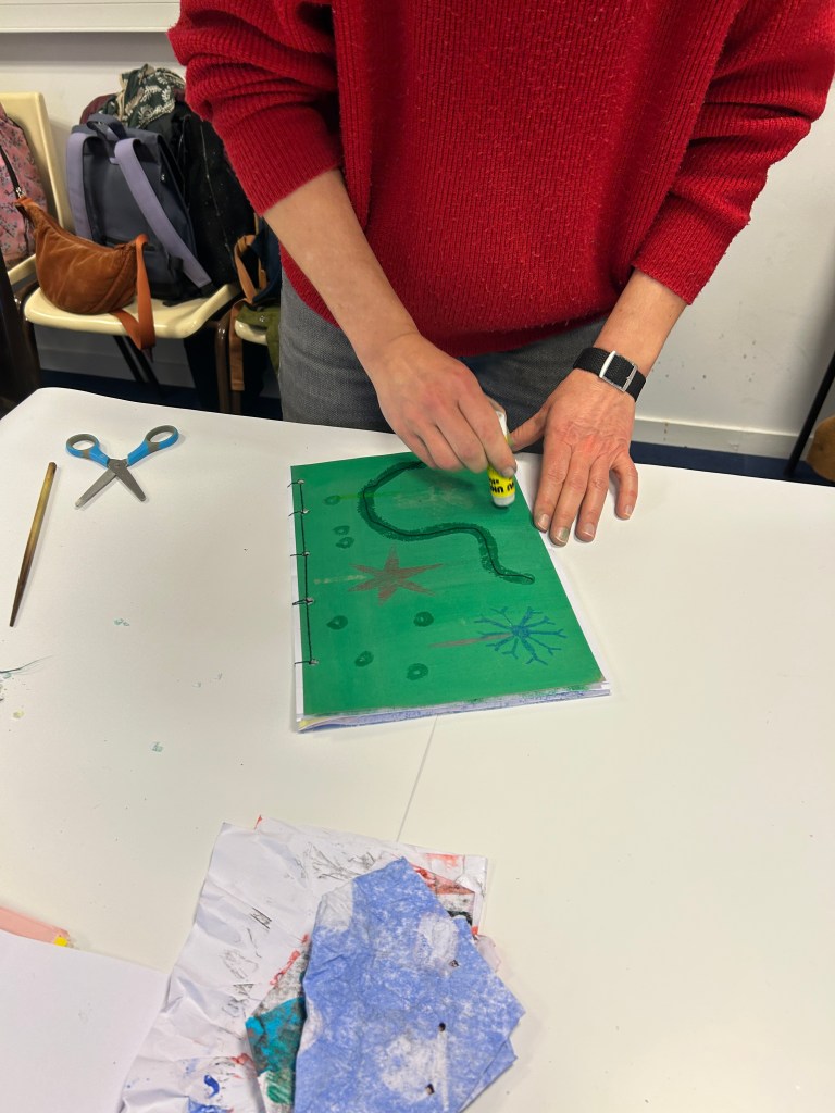Illimitée, comprendre, grâce à des techniques écolo-basiques d’imprimerie, créer des livres intégrant l’ensemble des impressions et matrices mises en œuvre. Les matériaux peuvent-être ceux du d’héserbage, livres opportunément pourvus de papier, cartons et plastiques nécessaires à cette pratique tout autant blibliothéco ou buro basique. Autant d’imprimeries à développer par ceu.les là même que j’entraine cette fois trois heures durant avec gouache, feutre bien juteux, cire colorée ou bougie, crayon fondant à l’eau, des bâtons de couleur pateux….