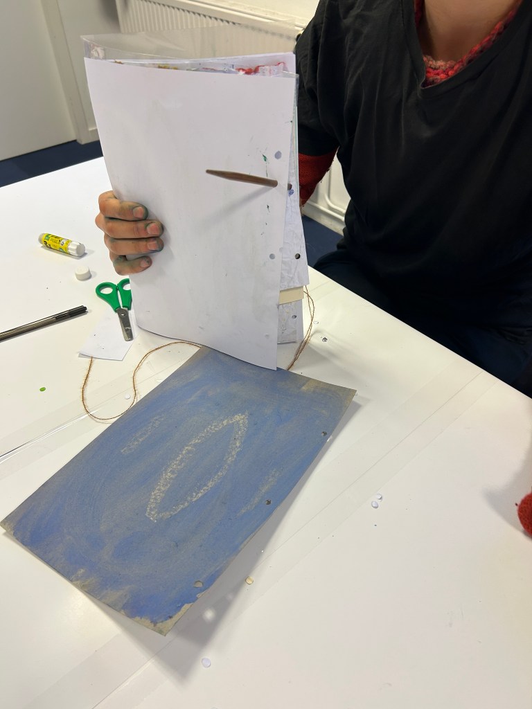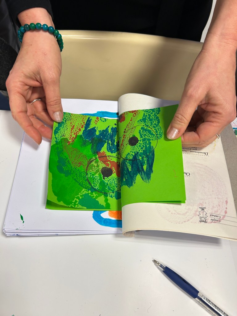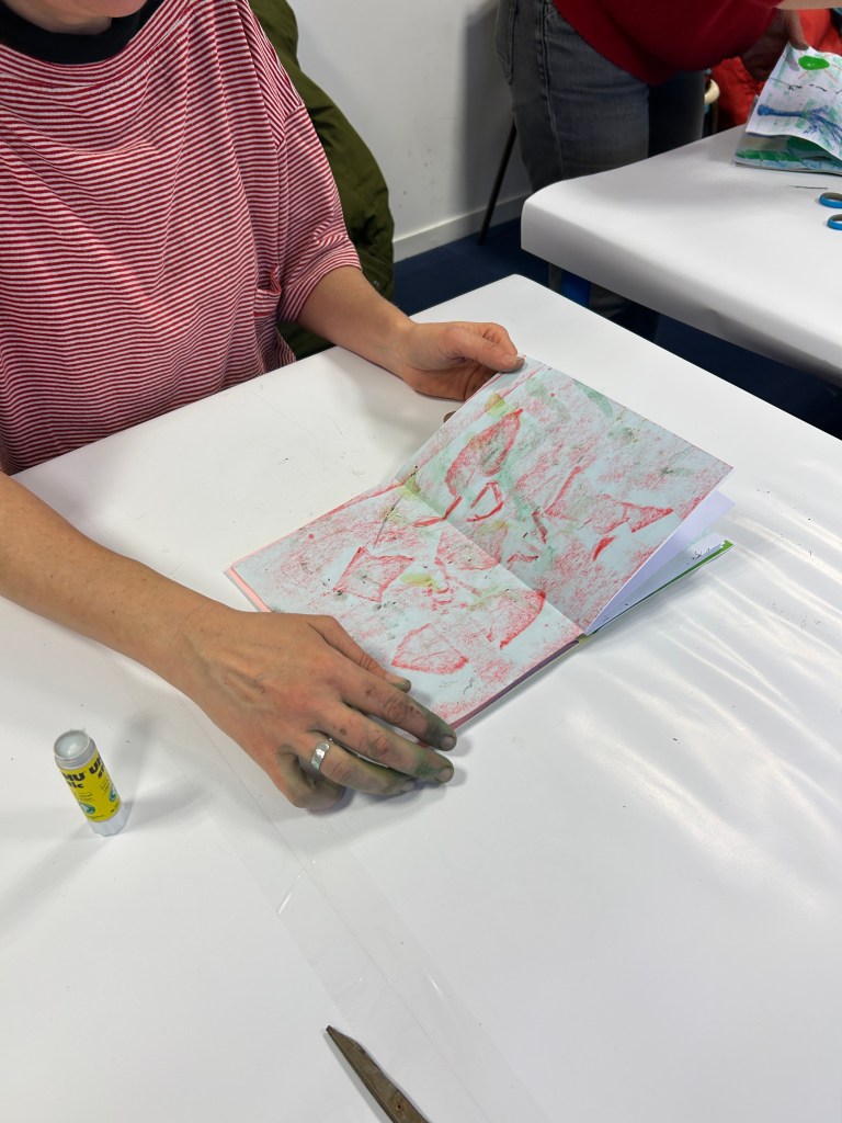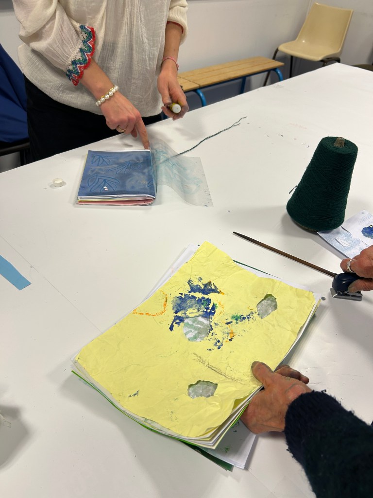 Le rythme soutenu, l’accompagnement ouvert, l’organisation en chaine, désinhibent et enlèvent toute hésitation. Chacun.e repart avec un cahier cousu/collé/agrafé sans laisser de reste. Joyeusement étonné.e d’avoir ainsi pu produire de tels ouvrages.