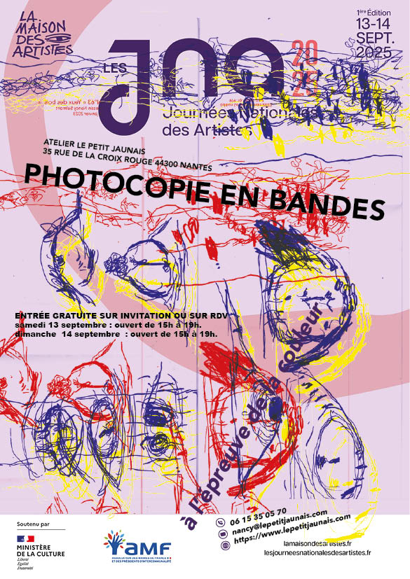 Connais tu les Journées Nationales des Artistes les 13 et 14 septembre 2025 ? mon évènement à cette occasion : PHOTOCOPIE EN BANDESINVITATION à quelques artistes-auteur.rices voisin.e.s et partenaires à imprimer une œuvre de leur choix avec un photocopieur laser couleur. L’adaptation graphique de leur travail pourra intégrer la collection La petites bandes aux éditionsLire la suite « JOURNÉES NATIONALES DES ARTISTES 13/14-09-2025 »