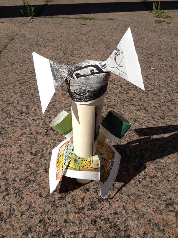 En suspension les sculptures de papier du petit jaunais, avec les bonzoms en bonbecs dans ce temple de la gourmandise.