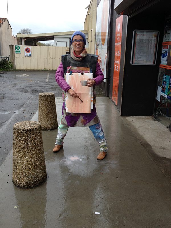 MOYENS ARTISTIQUES Une pratique artistique vécue au quotidien performative, mobile, évolutive, productive où les contextes sont sources d’inspiration. Le travail des volumes simples et familiers : robe, tunique, costumes de bain, chapeau, bas, Le travail de l’image par le dessin, la peinture, le monotype, la photographie, la conception graphique… « Le manuel de crabouillage » ** a été largement distribué. Son accueil a été salué par la création d’une « Palette à crabouiller » ergothérapeutique. Le costume de fiction (quasi médium) fait ou à faire, porté en toutes occasions. Évocation et invocation des vêtements de chacun comme des signes, signaux puissants. Mes compétences techniques avec des outils ergonomiques accessibles à tous.