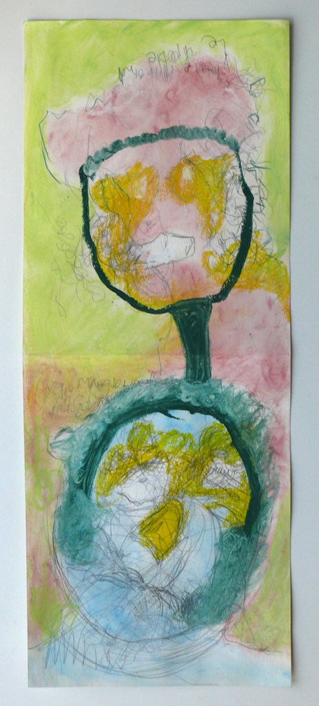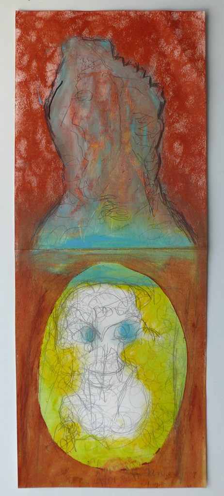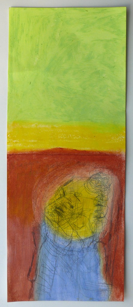 Pastels sur dessin au crayon, sur papier Rivoli 38 x 15,7 cm. Date de création, 2020